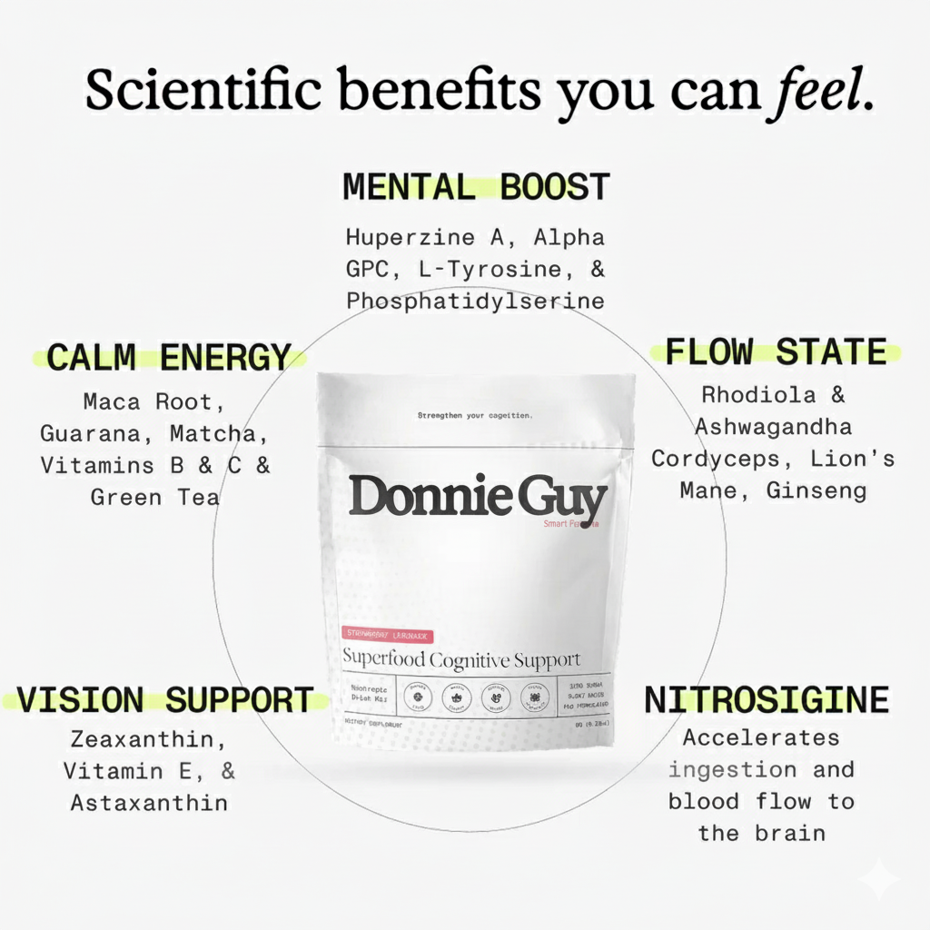 Each serving blends 27 rigorously studied ingredients — including nootropics, adaptogens, carotenoids, and essential vitamins — to boost focus, memory, and mental stamina while supporting long-term brain health.